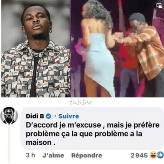 Dans une vidéo qui a très vite fait le tour des réseaux sociaux, on peut voir Didi B en train de repousser une fan qui tentait de s'exhiber en se frottant à lui sur scène. Un acte qui fait actuellement objet de débat sur la toile.